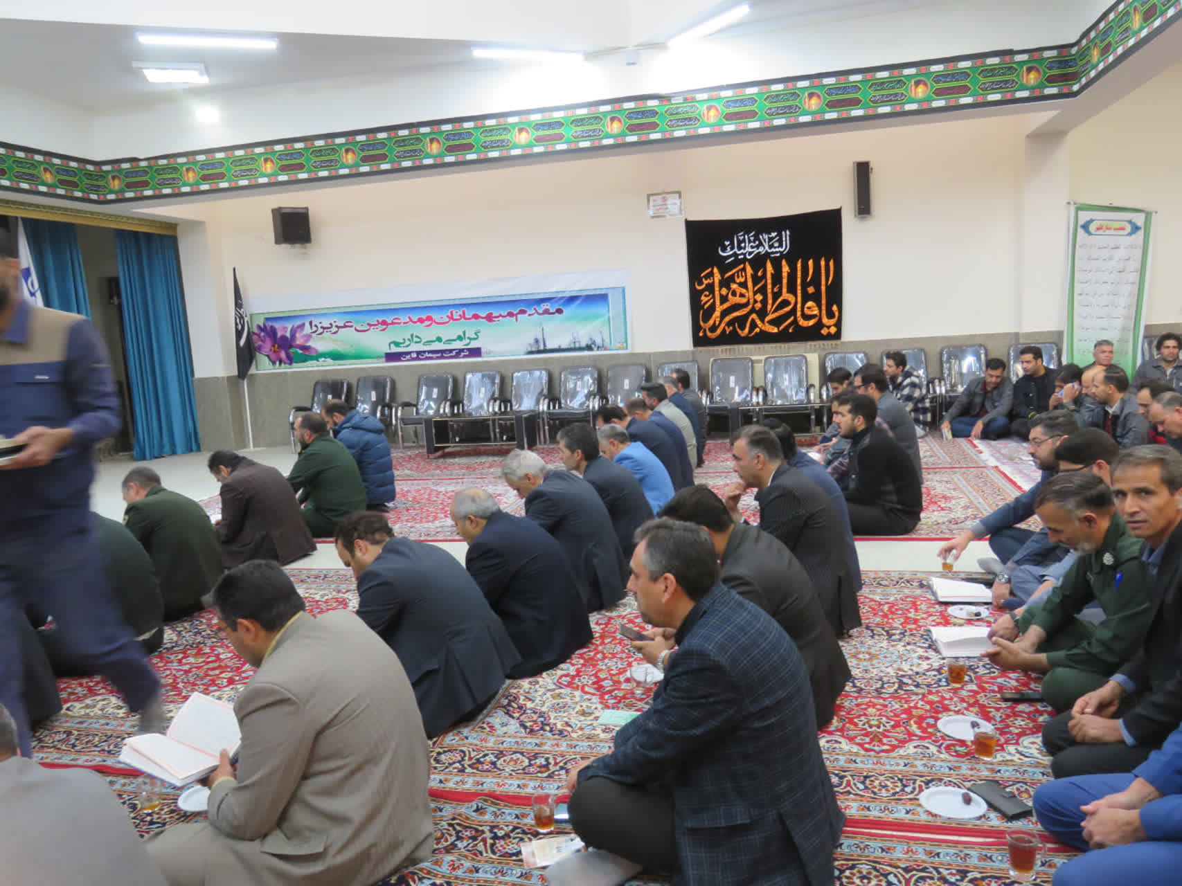 به گزارش روابط عمومی شرکت سیمان قاین، به مناسبت ایام سوگواری حضرت زهرا (سلاماللهعلیها)، مراسم پرفیض زیارت عاشورا با حضور مدیرعامل محترم شرکت، امام جمعه محترم شهر قاین، مدیران، کارکنان و مسئولین شهرستان در محل نمازخانه شرکت سیمان قاین برگزار شد.