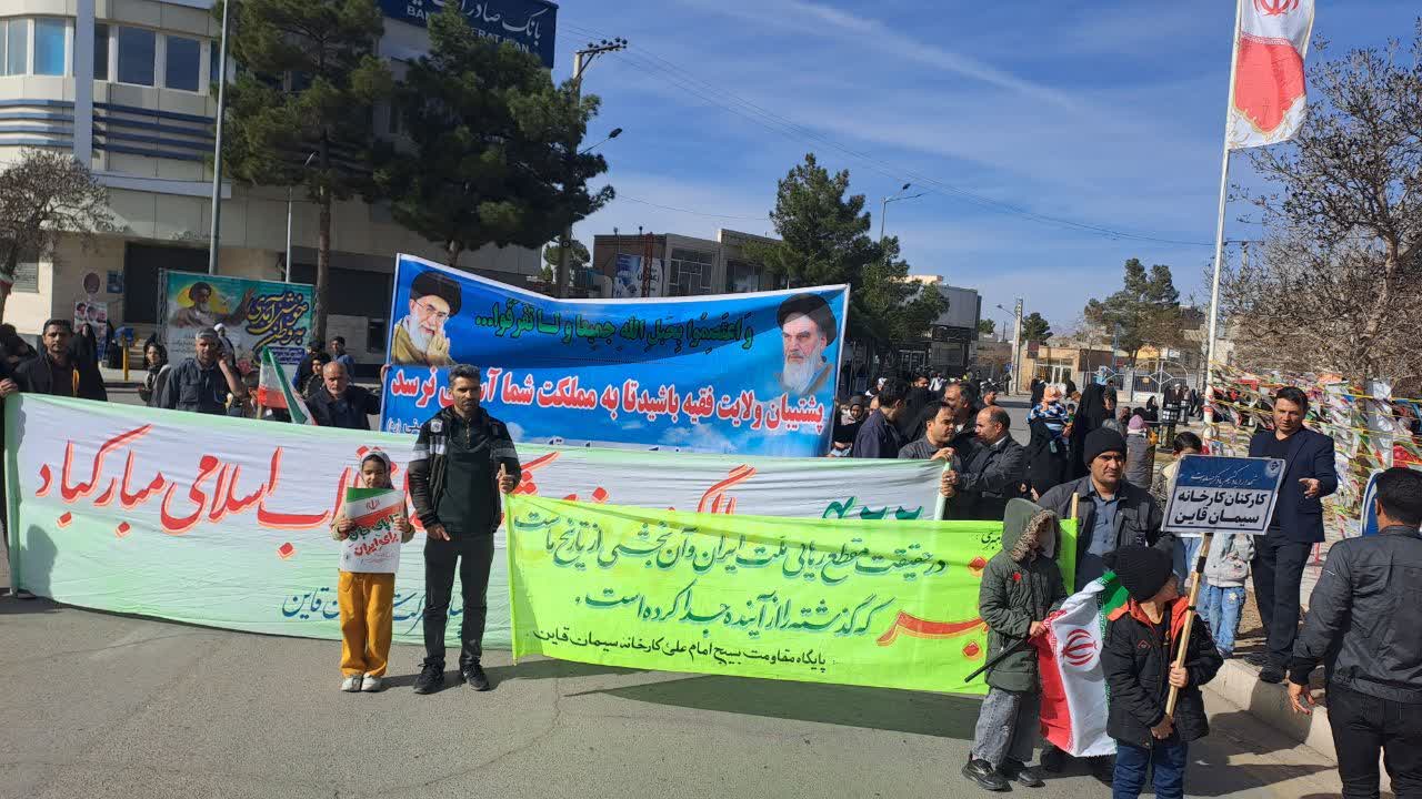 به گزارش روابط عمومی شرکت سیمان قاین، کارکنان این شرکت با حضور در مراسم ملی یومالله ۲۲بهمن، ضمن گرامیداشت یاد و خاطره امام خمینی (ره) و شهدای گرانقدر انقلاب اسلامی، حمایت خود را از دستاوردهای نظام مقدس جمهوری اسلامی ایران اعلام کردند و با سر دادن شعارهای انقلابی، شکوه و عظمت این روز تاریخی را به نمایش گذاشتند.